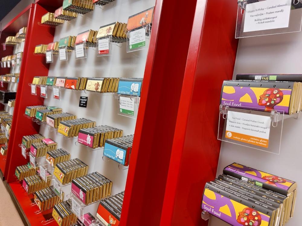 Akkor is érdemes ellátogatni a gyárba, ha nem akarunk a vezetésen részt venni. A shopban nagyon finom csokikat vásárolhatunk!