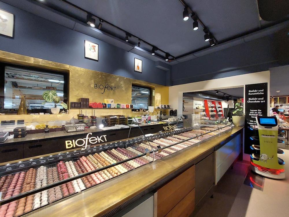 Tökéletes kiszolgálás. Az új robotok pralinékat és vékony töltött csokoládészeleteket, úgynevezett Nashido-táblákat szolgálnak fel. A vendégek egy érintőképernyős étlapról adhatják le rendelésüket és már érkeznek is a finomságok. Mindeközben pedig meg is figyelhetik az első két csokoládékészítő robotot munka közben, amik nagyon ügyesen tudnak vékony csokoládébevonatot önteni a nugátkockákra vagy megtölteni a Nashido formákat.